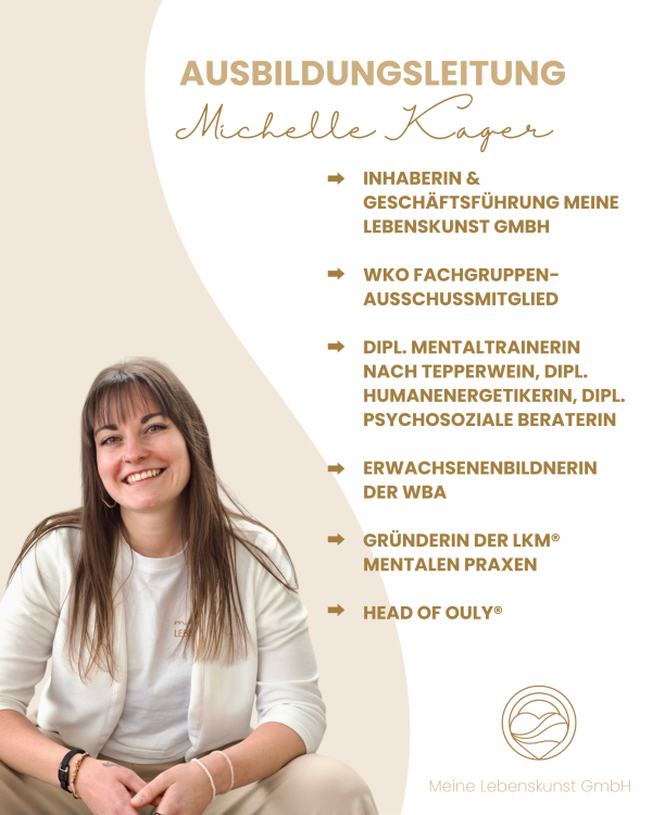 Die Ausbildung ist auf Berufsbefähigung, praktische Umsetzung und den Aufbau einer eigenen Praxis für die 1:1 Arbeit ausgerichtet. Inkludiert ist zudem die Option, das WKO-Qualitätssiegel zu absolvieren.